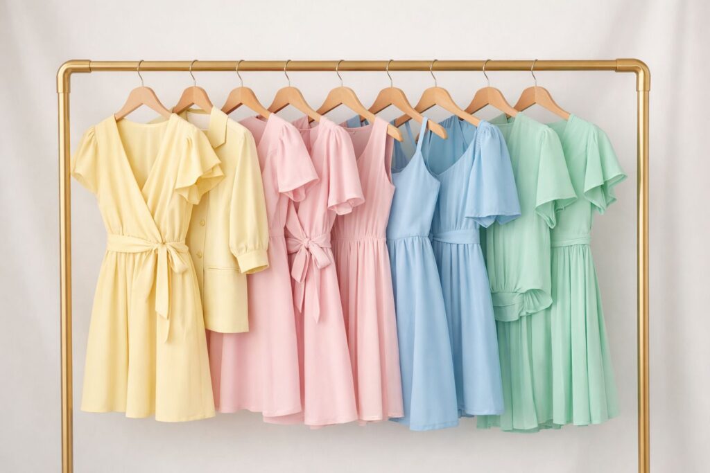 Pastellrosa erhält 2026 ein echtes Fashion-Upgrade. Statt verspieltem Candy-Look zeigt sich die Farbe erwachsen, ruhig und hochwertig – perfekt für moderne Sortimente im Großhandel mit Mode. Besonders spannend wird es, wenn Pastellrosa auf harte Materialien trifft: derbe Kunstleder-Pieces, dunkle Schokoladenbrauntöne oder glänzendes Schwarz sorgen für starke Kontraste.